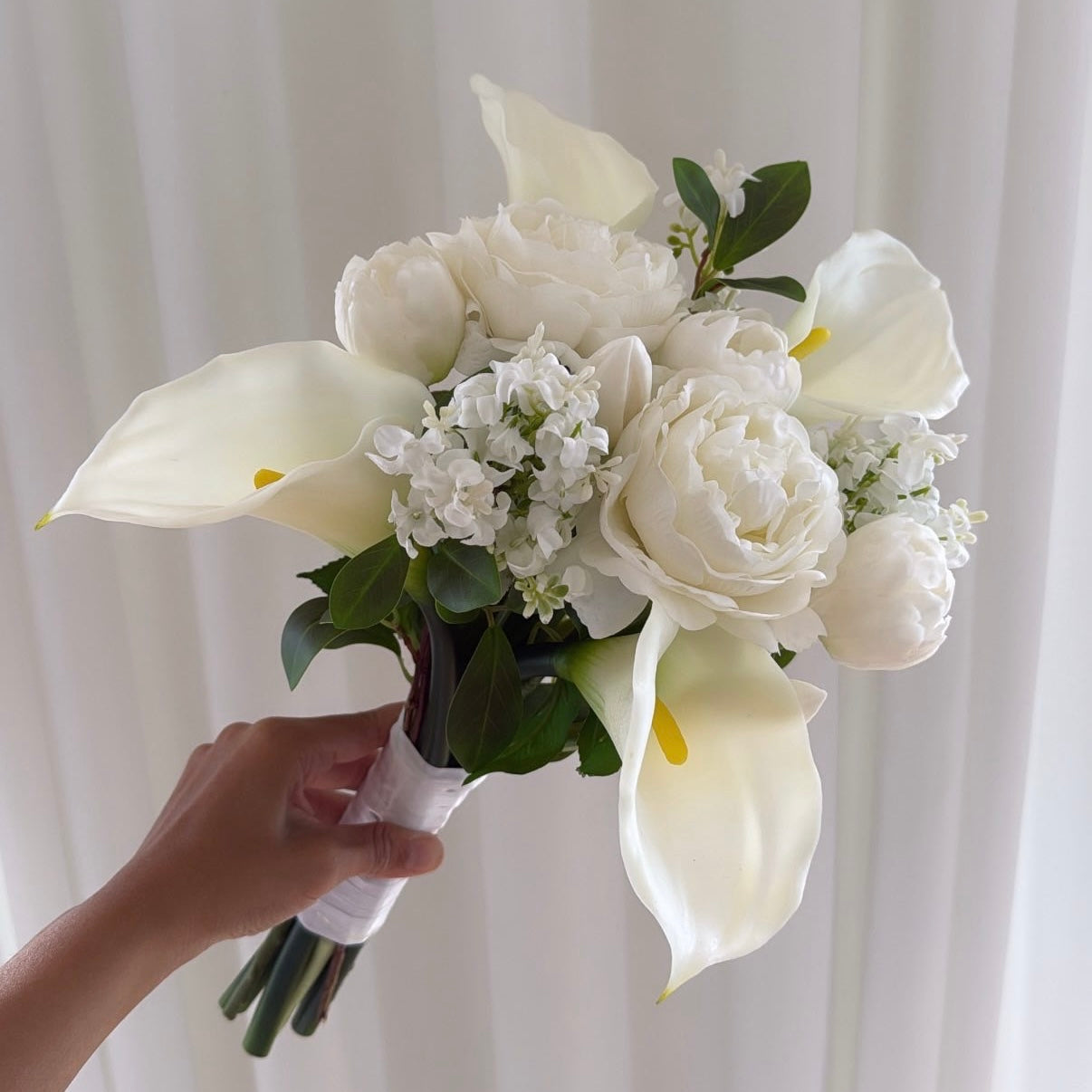 Sig ja til en brudebuket, der aldrig visner. Vores brudebuketter er lavet af smukke, naturtro kunstige blomster, som holder for evigt. De er det perfekte minde fra din store dag – elegant, romantisk og tidløst. Ønsker du en helt speciel buket? Du kan altid skrive til os for at finde den perfekte løsning til din store dag.