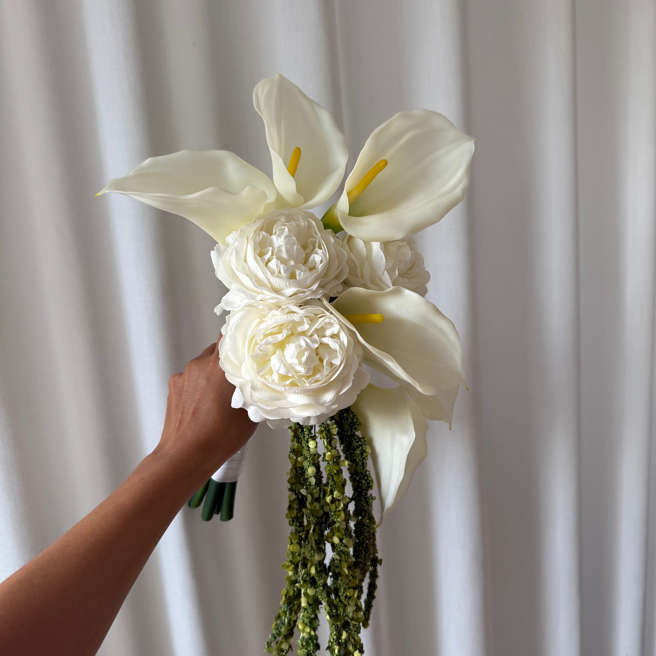 Sig ja til en brudebuket, der aldrig visner. Vores brudebuketter er lavet af smukke, naturtro kunstige blomster, som holder for evigt. De er det perfekte minde fra din store dag – elegant, romantisk og tidløst. Ønsker du en helt speciel buket? Du kan altid skrive til os for at finde den perfekte løsning til din store dag.