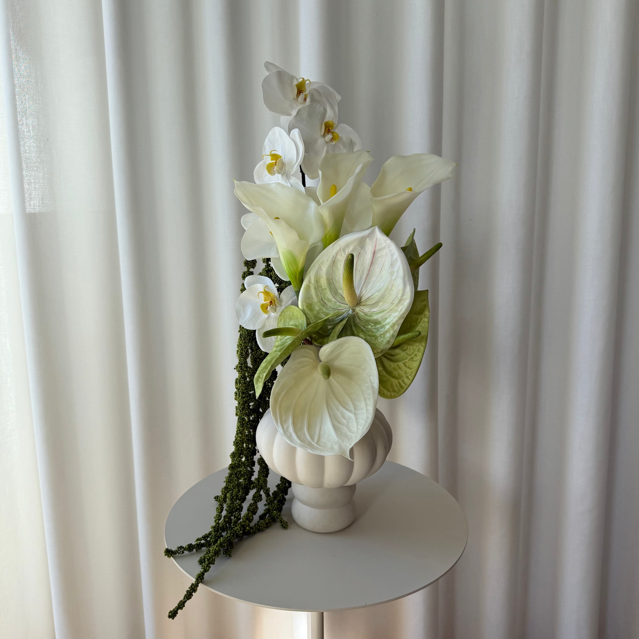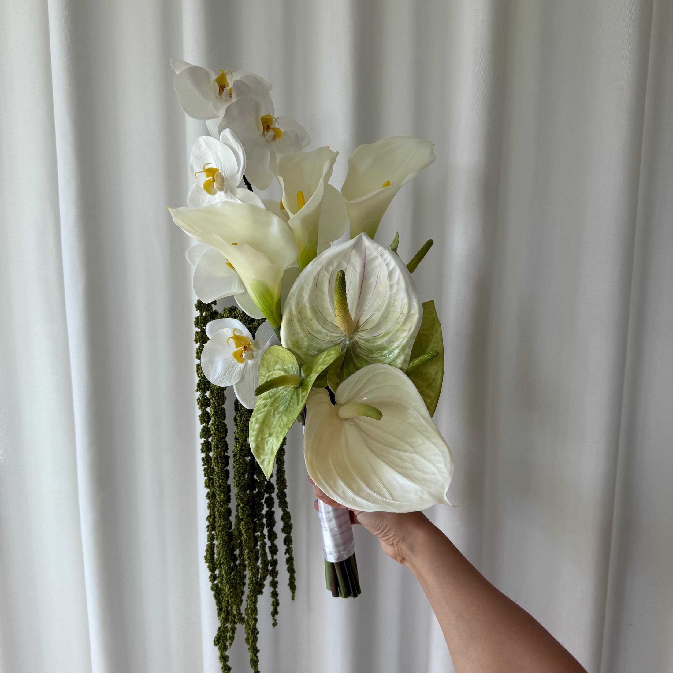 Sig ja til en brudebuket, der aldrig visner. Vores brudebuketter er lavet af smukke, naturtro kunstige blomster, som holder for evigt. De er det perfekte minde fra din store dag – elegant, romantisk og tidløst. Ønsker du en helt speciel buket? Du kan altid skrive til os for at finde den perfekte løsning til din store dag.