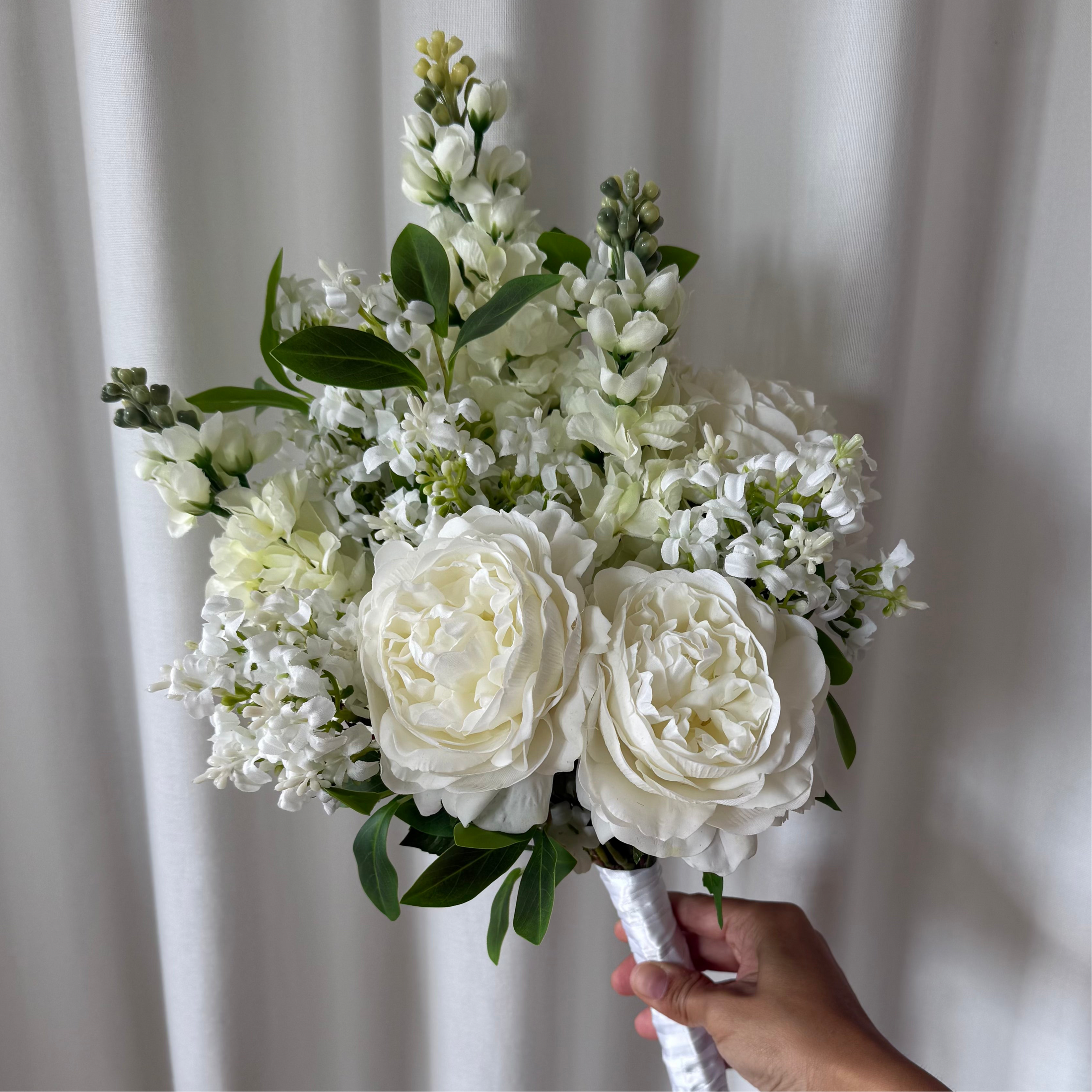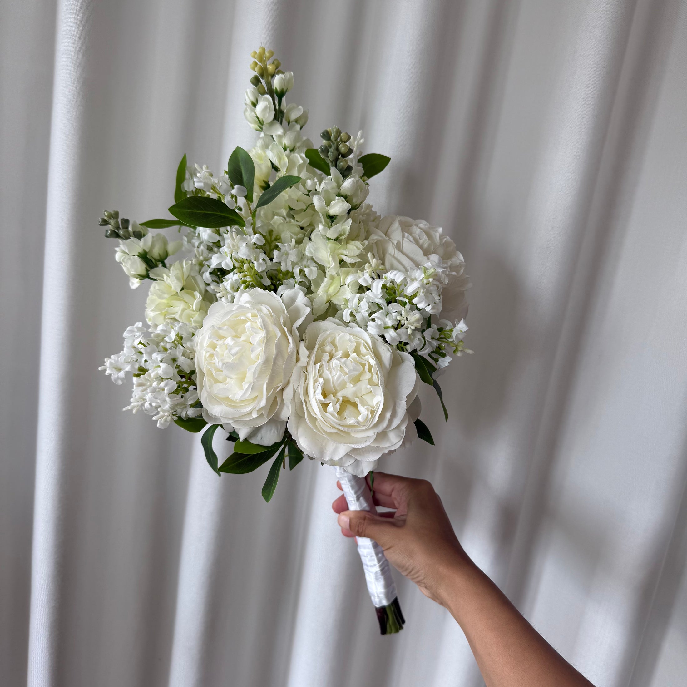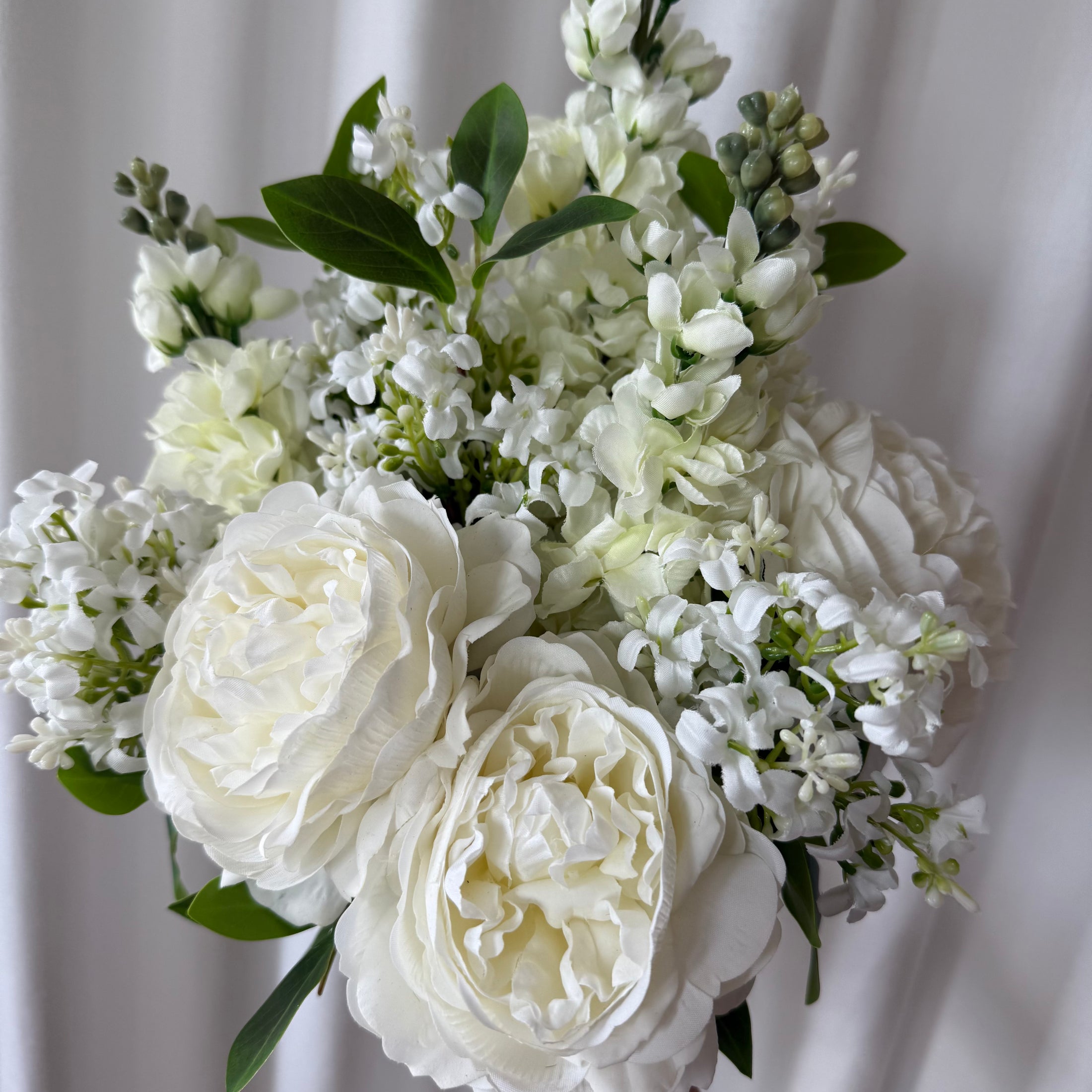 Sig ja til en brudebuket, der aldrig visner. Vores brudebuketter er lavet af smukke, naturtro kunstige blomster, som holder for evigt. De er det perfekte minde fra din store dag – elegant, romantisk og tidløst. Ønsker du en helt speciel buket? Du kan altid skrive til os for at finde den perfekte løsning til din store dag.