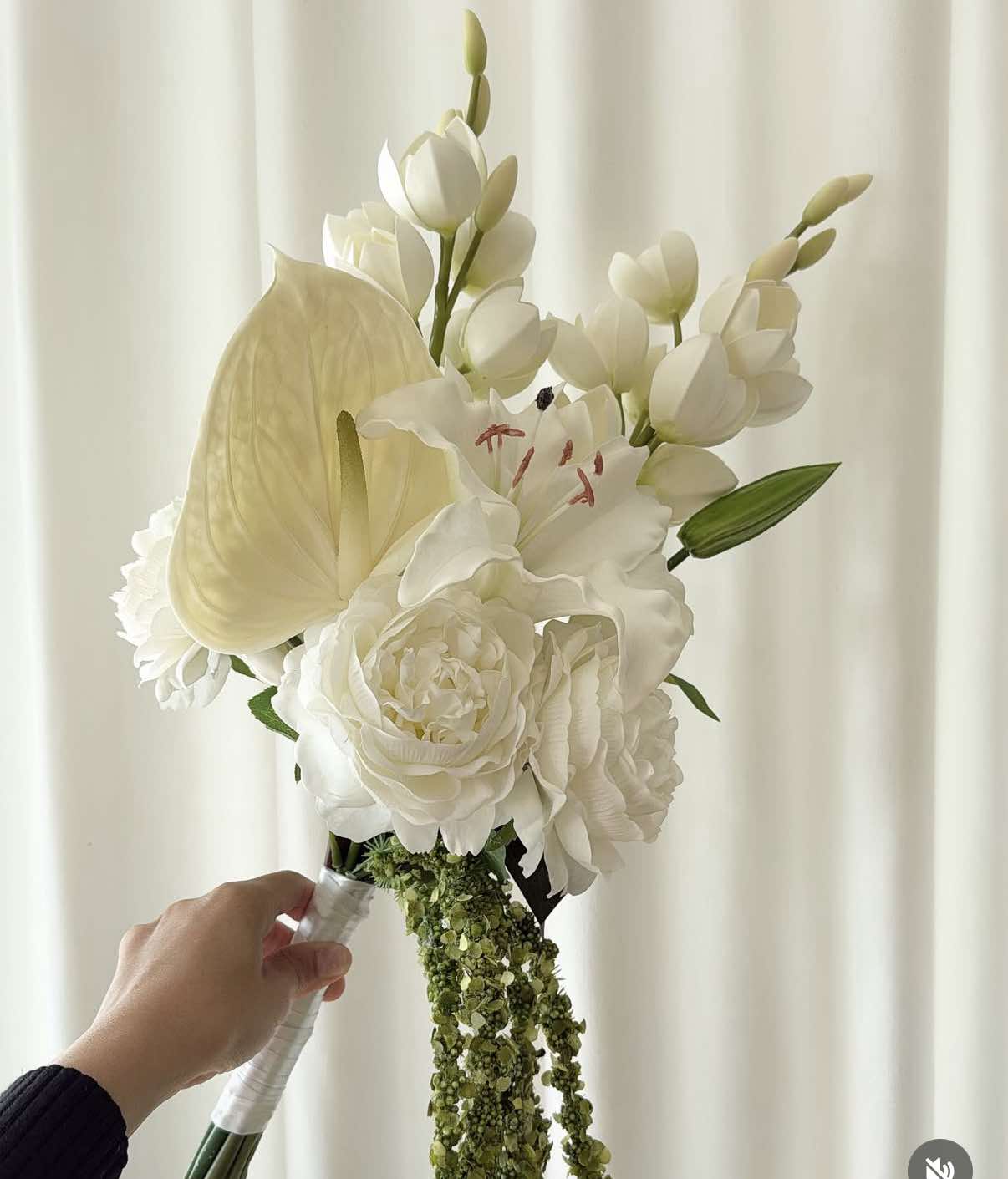 Sig ja til en brudebuket, der aldrig visner. Vores brudebuketter er lavet af smukke, naturtro kunstige blomster, som holder for evigt. De er det perfekte minde fra din store dag – elegant, romantisk og tidløst. Ønsker du en helt speciel buket? Du kan altid skrive til os for at finde den perfekte løsning til din store dag.