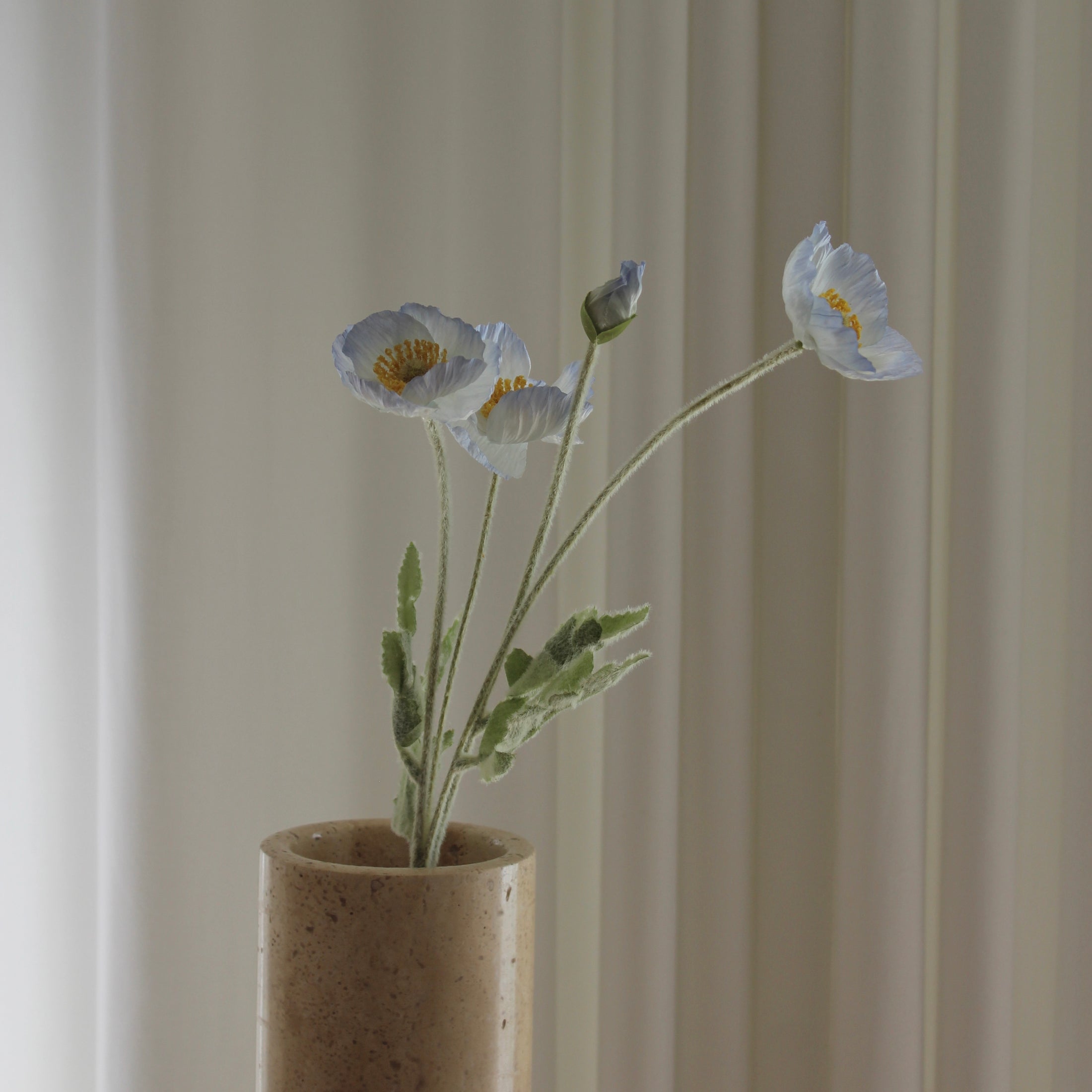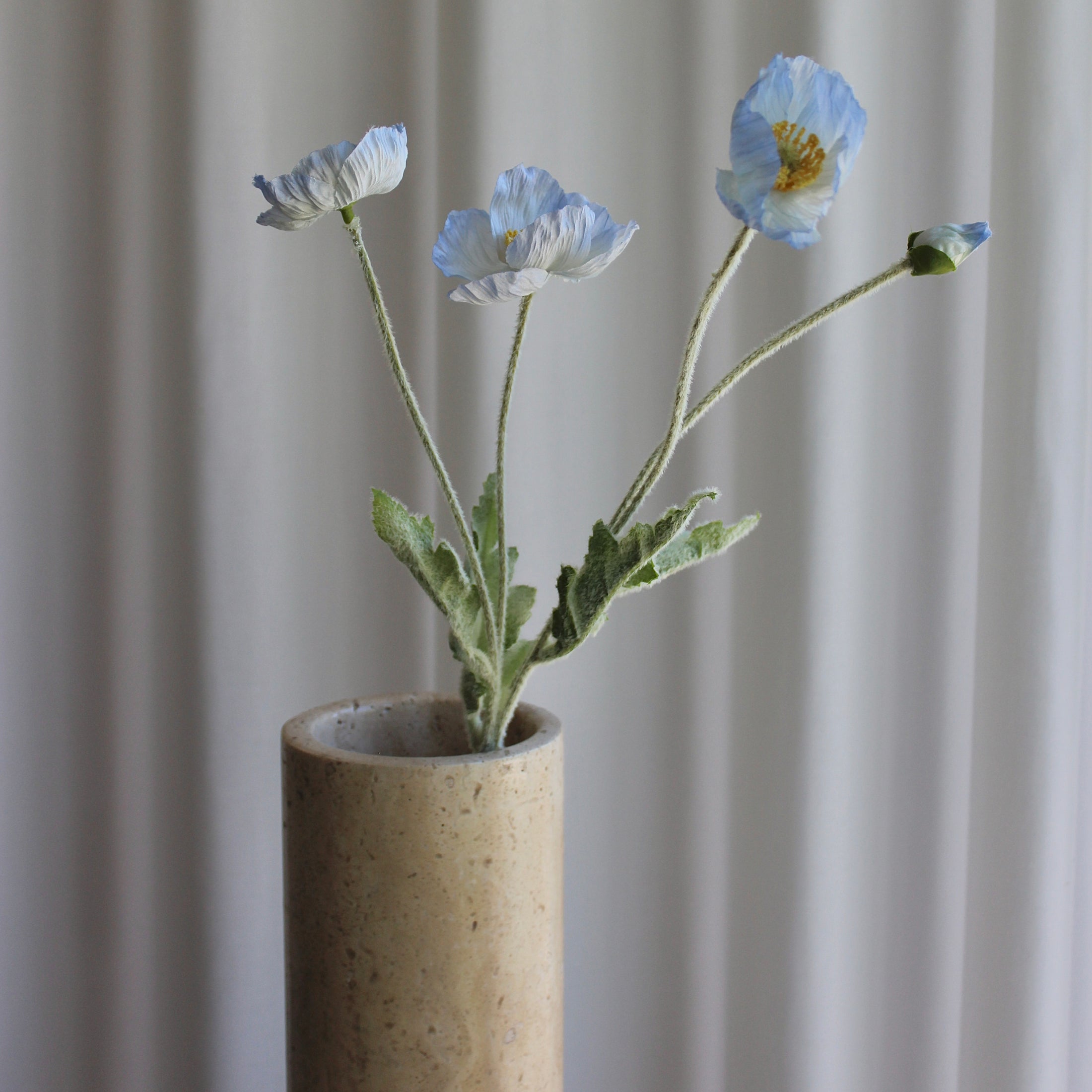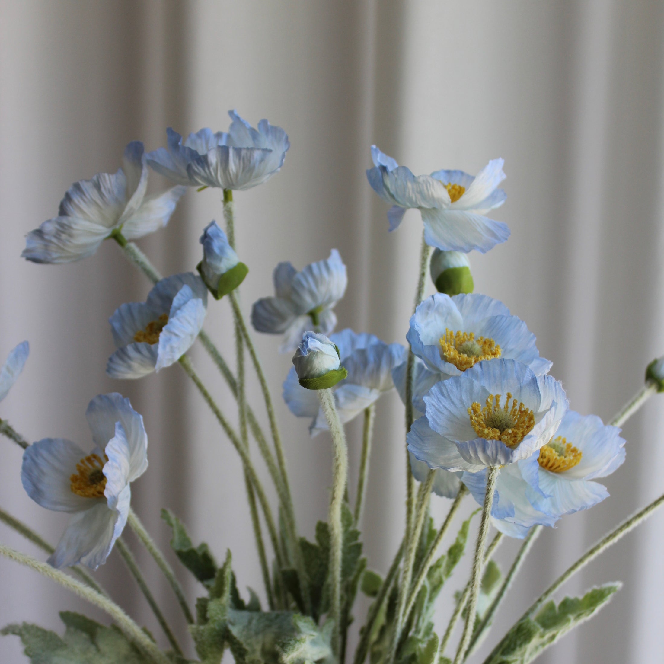 Den smukke Poppy blå (Papaver spp.) forener valmuens yndefulde lethed med et naturtro og detaljeret design. De fine kronblade og livagtige farver tilfører et strejf af elegance og varme til enhver indretning.